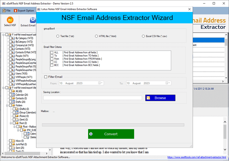 I was recently assigned the task of pulling all email addresses from an NSF database file for a client’s newsletter migration. I didn’t need full emails—just the addresses in headers (From, To, CC, BCC). I initially tried writing a script, but it wasn’t accurate or consistent. Then I came across this article: Extract Email Addresses from NSF Files. It recommended using eSoftTools NSF to PST Converter Software, which has a feature to extract email addresses cleanly from all fields. It even lets you preview the data before export, and the results can be saved as CSV or TXT. This saved me hours of work. Has anyone tried doing this via PowerShell or any other automation?